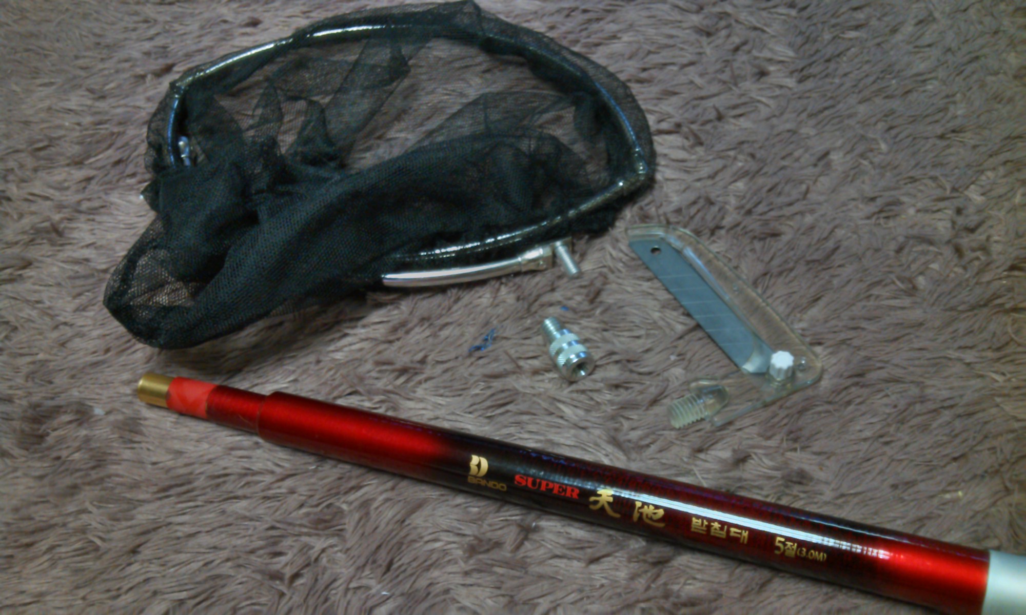 1. 준비물 : 안쓰는 받침대 or 안쓰는 낚시대 / 뜰채부싱(12mm/유도탄이라고도 함) / 수축고무 / 확장조인트(12mm → 8mm)